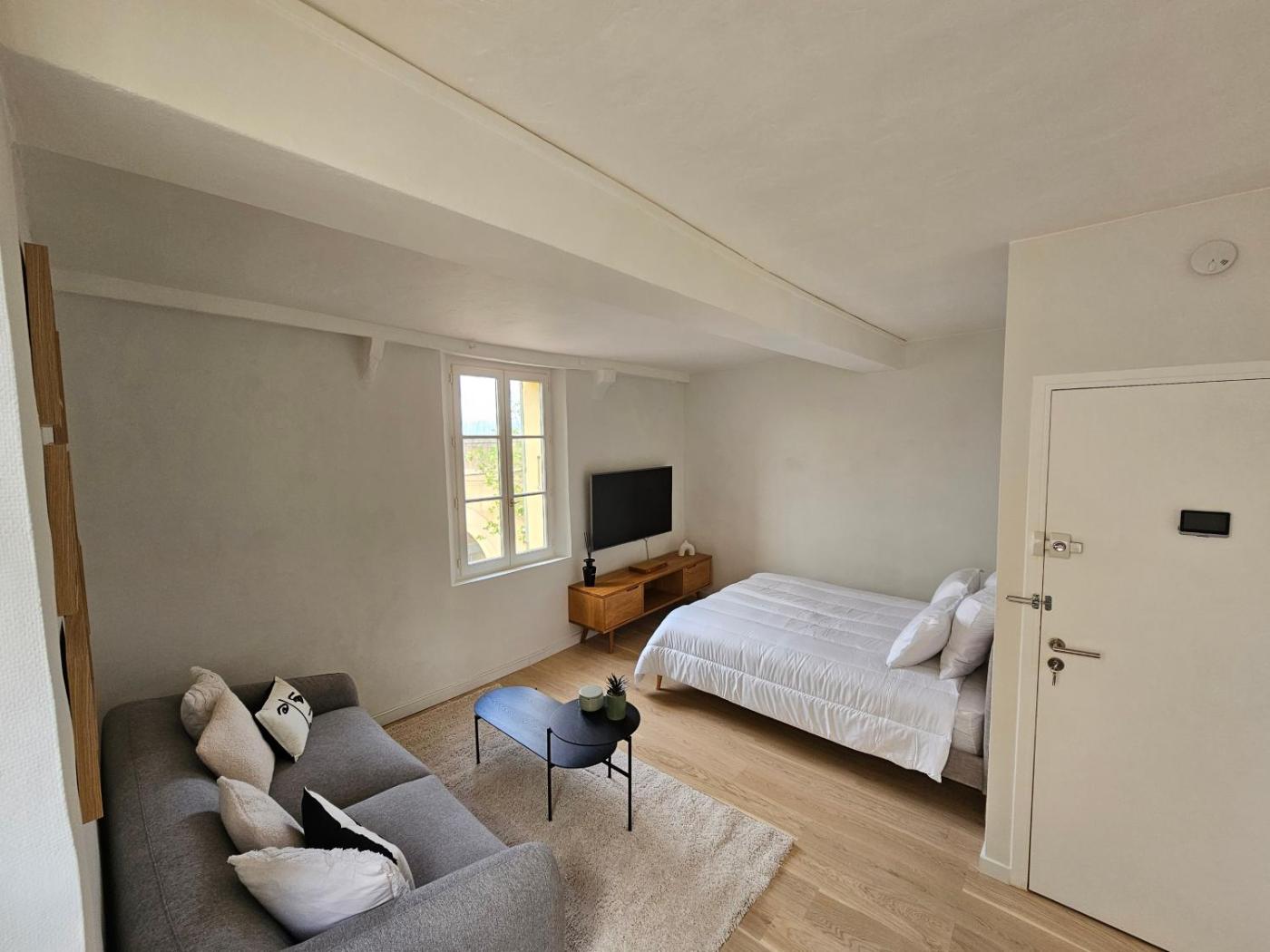 Appartement 1 Chambre. This air-conditioned apartment comes with 1 living room, 1 separate bedroom and 1 bathroom with a shower. Guests can make meals in the kitchen that features a stovetop, a refrigerator, kitchenware and a tea and coffee maker. The apartment has parquet floors, a seating area with a flat-screen TV, a wardrobe, a dressing room, as well as a sofa. The unit has 2 beds.