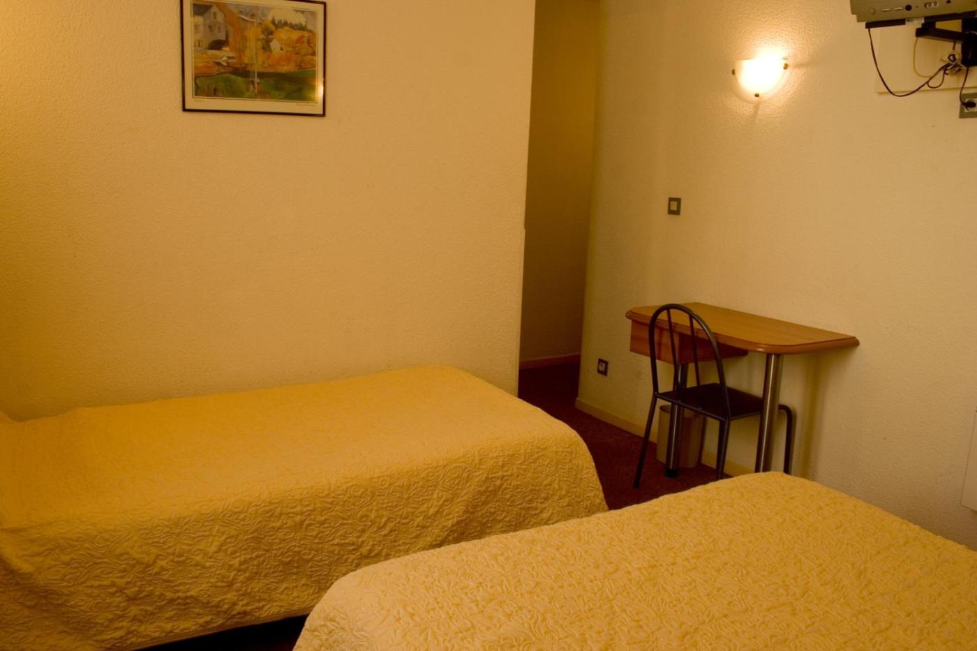Chambre Lits Jumeaux. Situées à larrière de lhôtel, ces chambres bénéficient dun emplacement au calme. Les chambres disposent dune télévision à écran plat et dun bureau ou dune table. ;