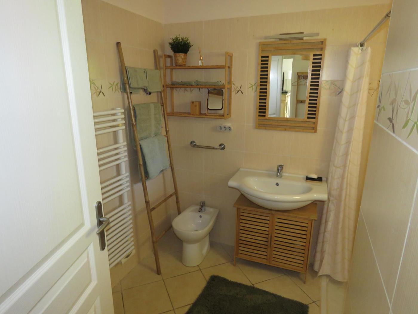 Appartement 1 Chambre. This apartments special feature is the private pool. Featuring a private entrance, this air-conditioned apartment consists of 1 living room, 1 separate bedroom and 1 bathroom with a shower and a hairdryer. Guests can make meals in the kitchen that is equipped with a stovetop, a refrigerator, kitchenware and a microwave. The spacious apartment provides a flat-screen TV with satellite channels, a washing machine, a coffee machine, a seating area as well as garden views. The unit offers 2 beds.