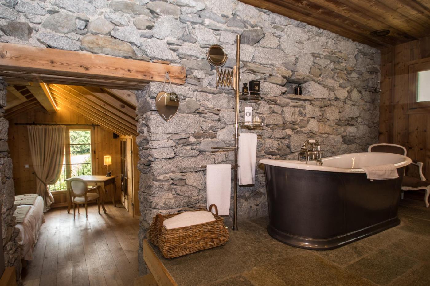 Chalet Supérieur. Ce chalet est doté dune cheminée. Ce chalet spacieux comprend 2 salons, 4 chambres séparées ainsi que 4 salles de bains pourvues d’une douche à litalienne et d’articles de toilette gratuits. La cuisine est équipée de plaques de cuisson, dun réfrigérateur, d’un lave-vaisselle et d’ustensiles. Ce chalet insonorisé dispose d’un lave-linge, d’une entrée privée et d’une terrasse avec vue sur le jardin. Ce logement comporte 6 lits. ;