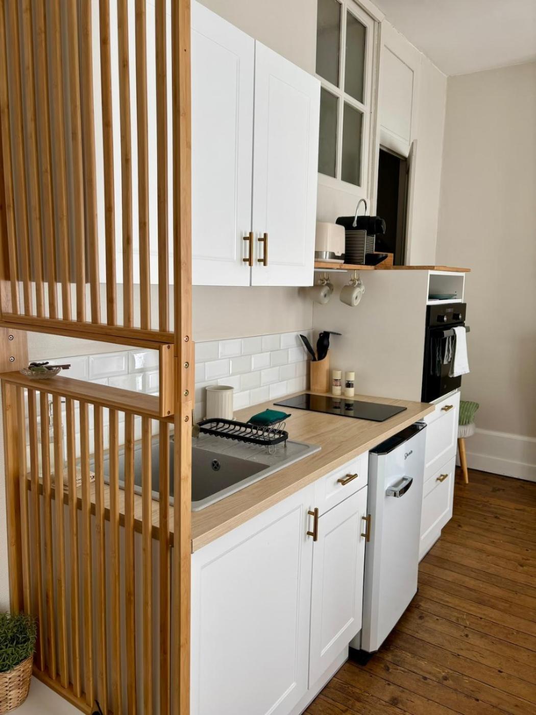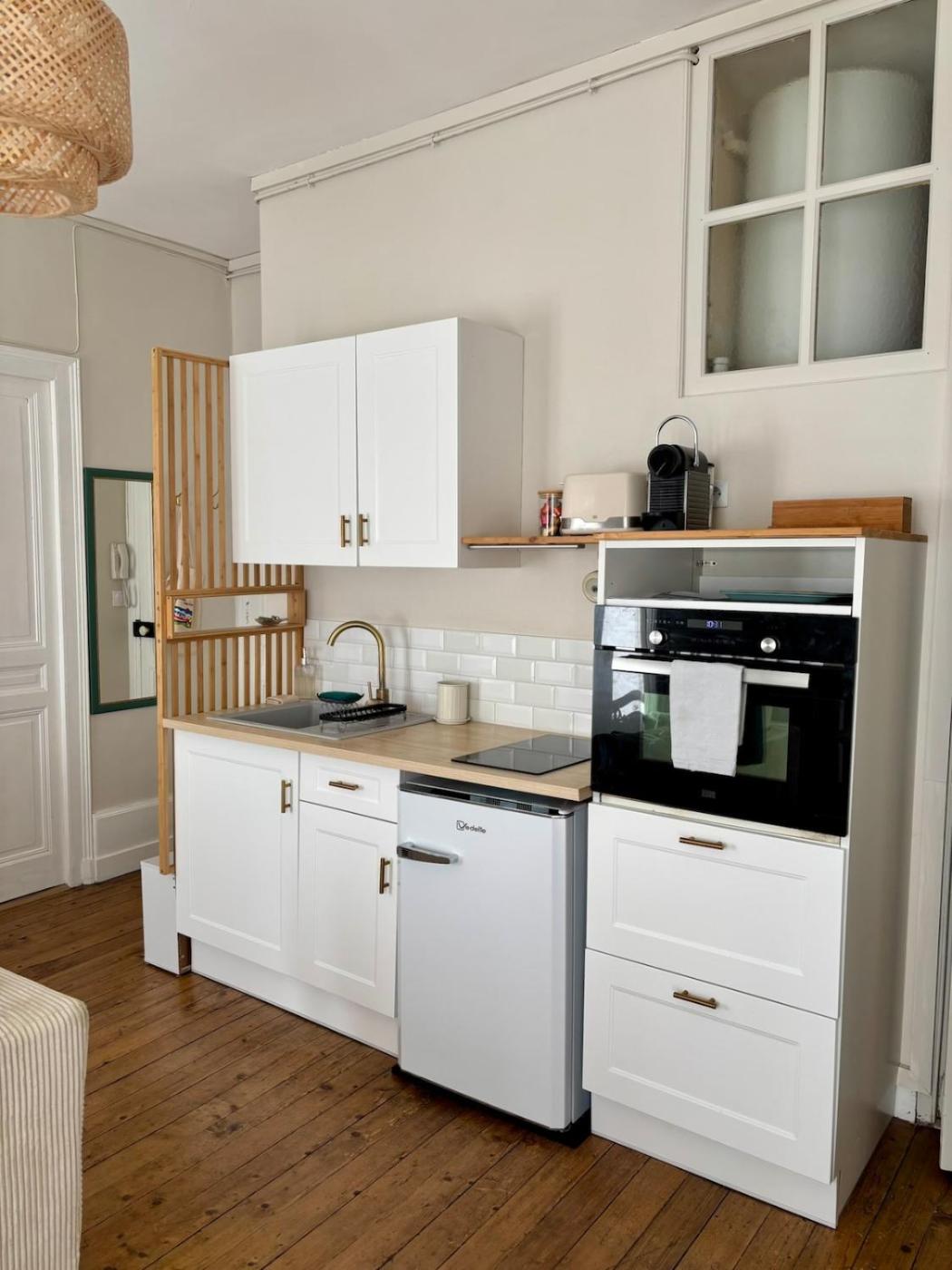Appartement 1 Chambre. Guests can make meals in the kitchen that features a stovetop, a refrigerator, an oven and a microwave. The apartment features a washing machine, a tea and coffee maker, a dining area, a wardrobe, as well as a flat-screen TV. The unit has 1 bed.