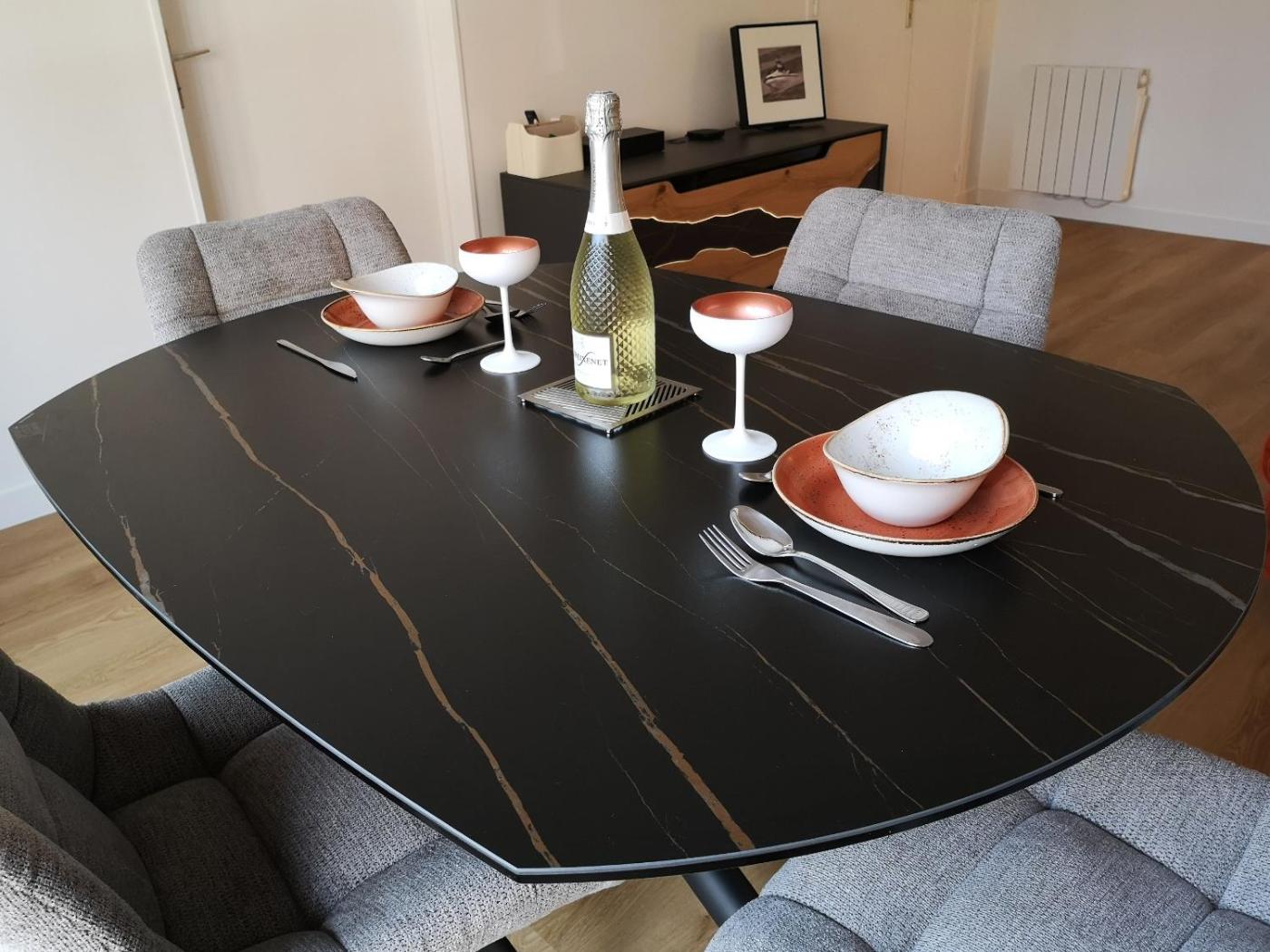 Appartement 1 Chambre. This apartment comes with 1 living room, 1 separate bedroom and 1 bathroom with a bath and a shower. Guests can make meals in the kitchen that features a stovetop, a refrigerator, a dishwasher and kitchenware. The apartment features a flat-screen TV, a washing machine, a coffee machine, heating as well as city views. The unit has 2 beds.