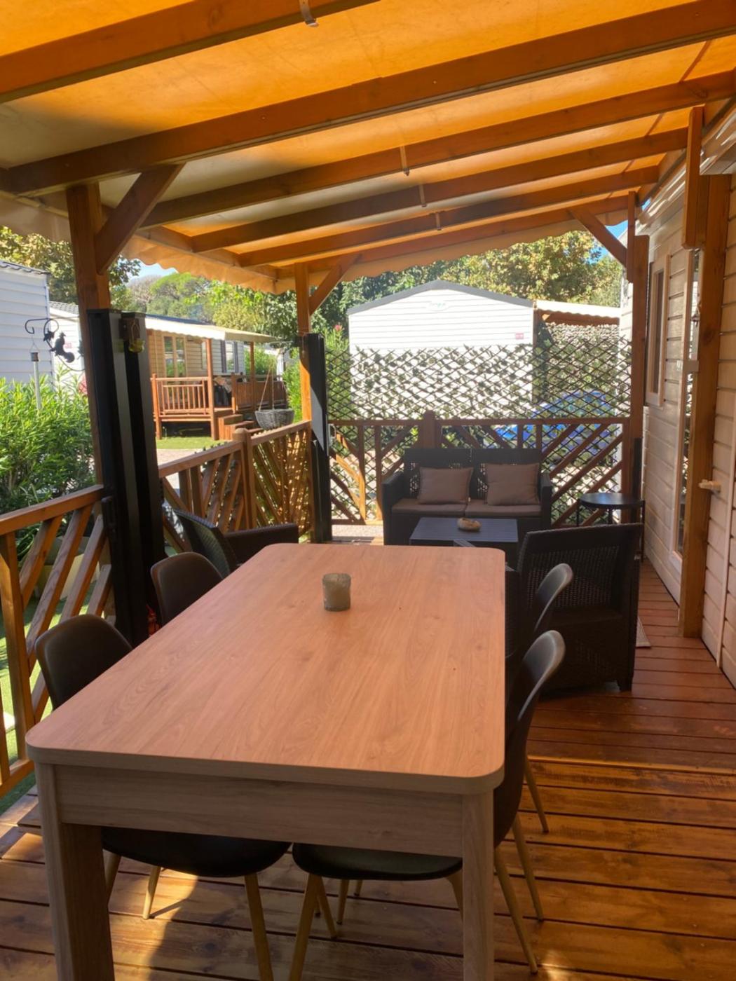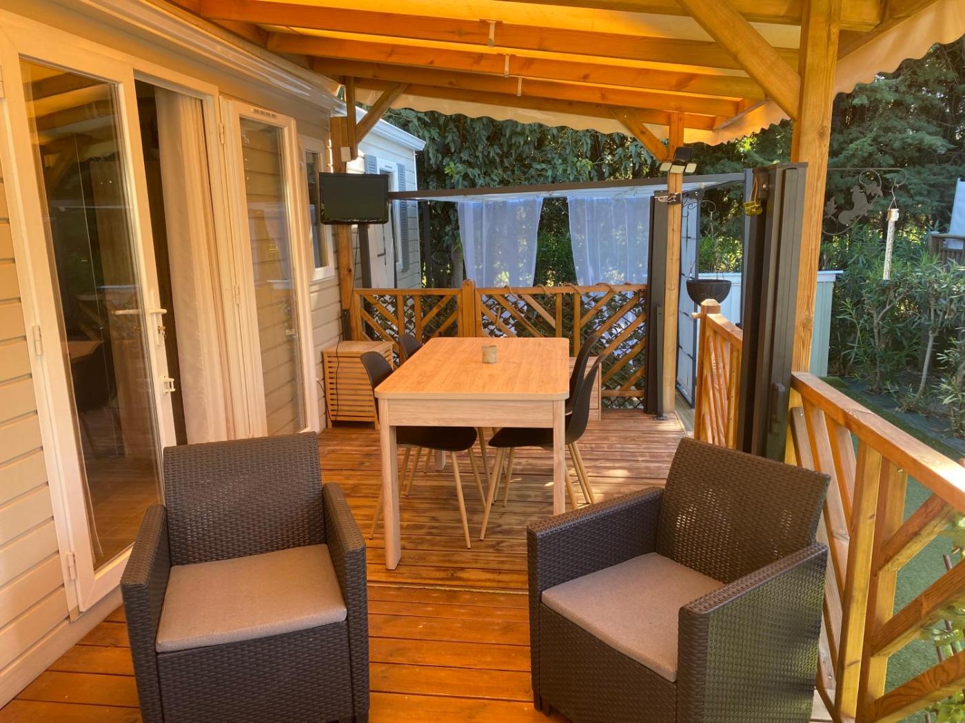 Mobile Home. The pool with a view and hot tub are the special features of this mobile home. Boasting a private entrance, this air-conditioned mobile home features 1 living room, 3 separate bedrooms and 1 bathroom with a shower and a hairdryer. Guests will find a stovetop, a refrigerator, a dishwasher and kitchenware in the fully equipped kitchen. The mobile home also comes with a barbecue. Featuring a terrace with garden views, this mobile home also features a washing machine and a flat-screen TV with cable channels. The unit has 4 beds.