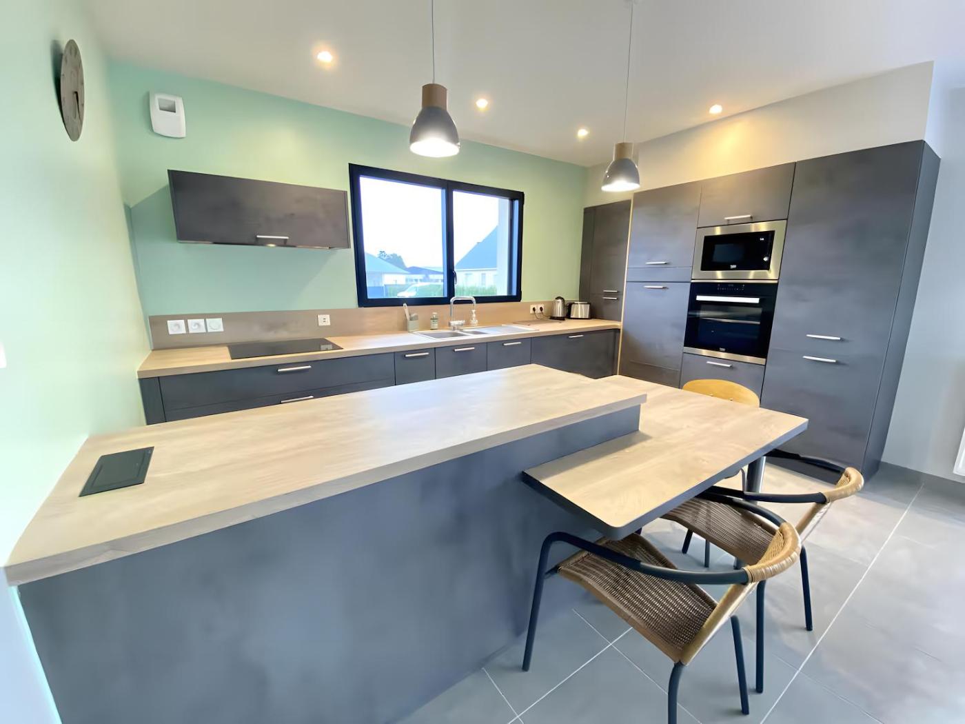 Maison 2 Chambres. This holiday home comprises 2 bedrooms, kitchen, a terrace and 1 bathroom with a shower. Guests will find a dishwasher, kitchenware, an oven and a microwave in the well-fitted kitchen. The holiday home also provides guests with a barbecue. The holiday home provides a washing machine, a private entrance, a coffee machine, a TV with satellite channels, as well as garden views. The unit offers 3 beds.