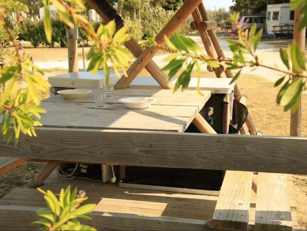 Tente. Cette tente dispose d’un coin repas et d’un accès à une salle de bains commune. Vous pourrez profiter dune terrasse et dun coin repas extérieur. Le logement comporte 1 lit. ;