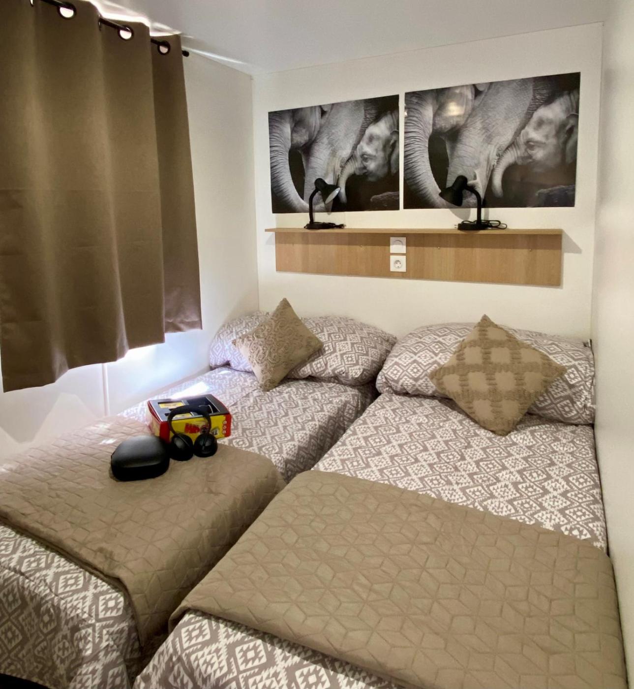 Mobile Home. Ce mobile home climatisé comprend un salon, une chambre séparée et une salle de bains avec une douche. La cuisine du mobile home est équipée d’un réfrigérateur et d’ustensiles. Doté d’une machine à café, ce mobile home dispose d’une terrasse et d’un coin salon avec une télévision à écran plat. Le logement comporte 4 lits. ;