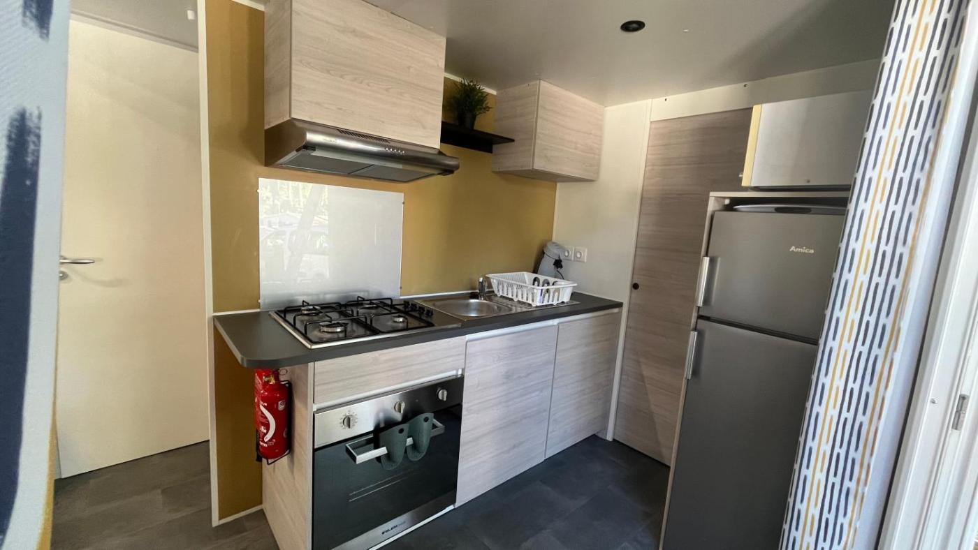 Mobile Home. This air-conditioned mobile home comprises 1 living room, 2 separate bedrooms and 1 bathroom with a shower. Meals can be prepared in the well-fitted kitchen, which comes with a stovetop, a refrigerator, kitchenware and an oven. Featuring a terrace, this mobile home also provides a tea and coffee maker, a dining area and a flat-screen TV. The unit offers 3 beds.