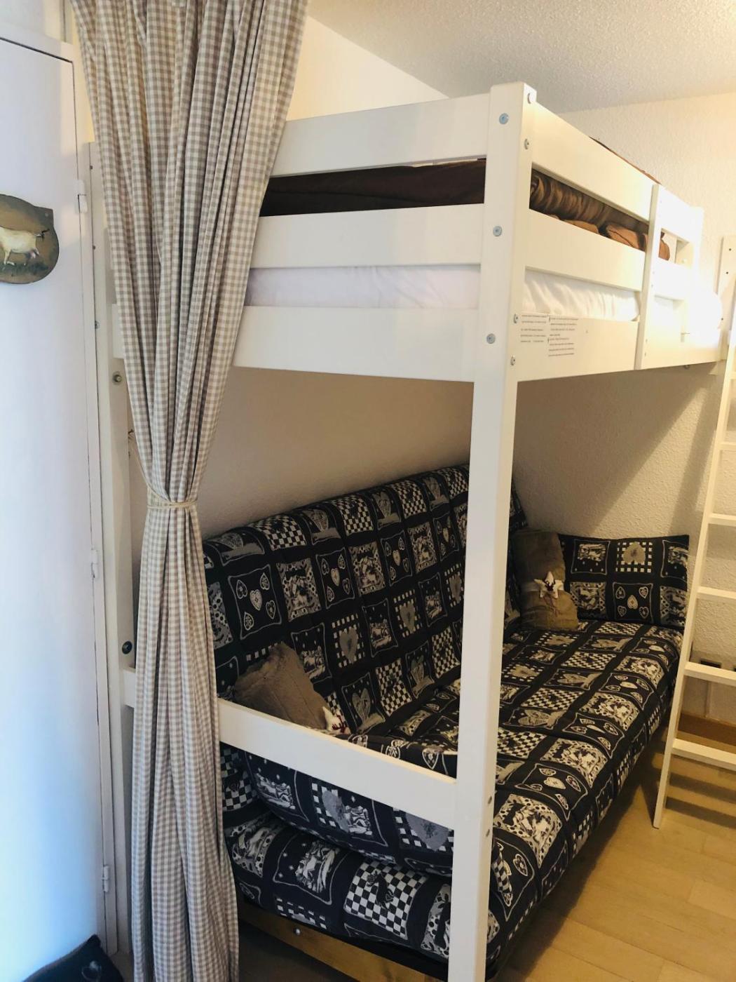 The studio has a coin-nuit with bunk bed and a sofabed in living area.