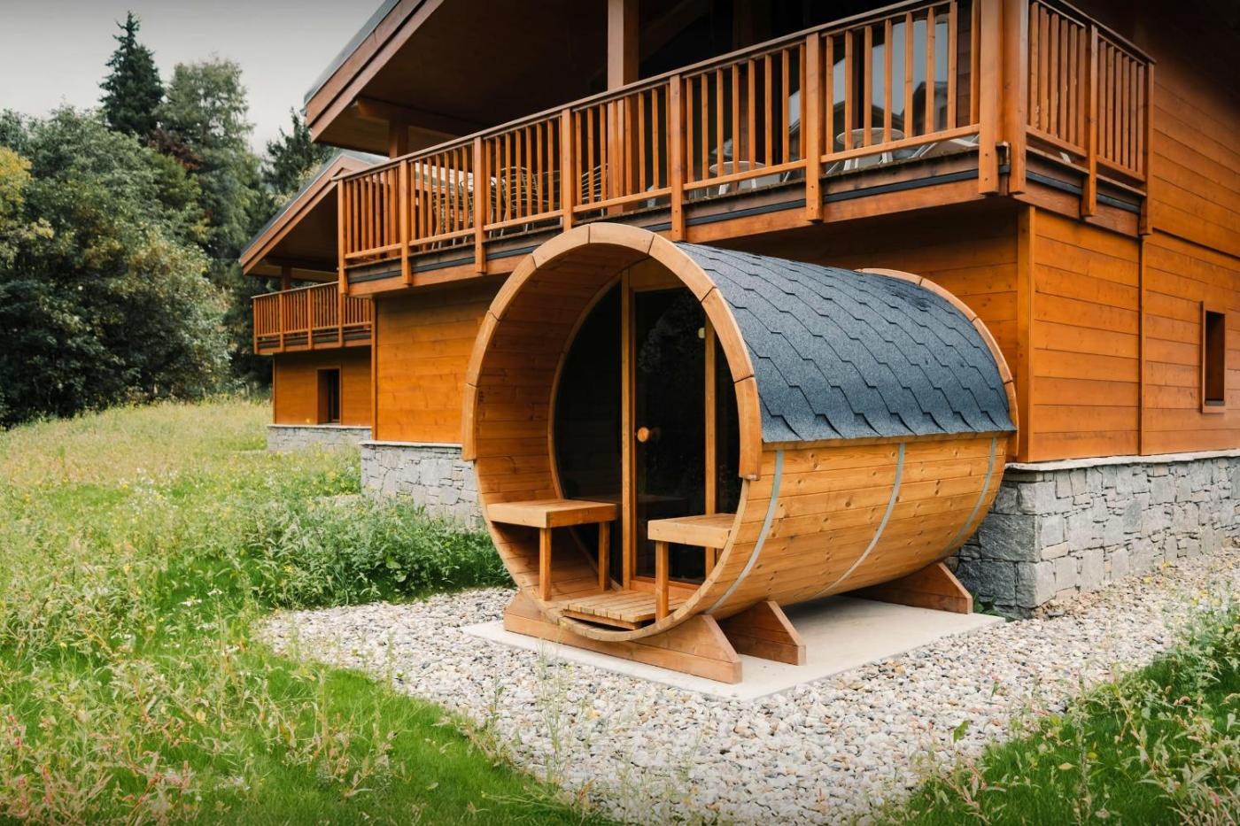 Chalet. This chalet features a sauna and a fireplace. Boasting a private entrance, this spacious chalet also features 4 bedrooms, a seating area and 2 bathrooms with a shower and a hairdryer. Guests will find a stovetop, a refrigerator, a dishwasher and kitchenware in the fully equipped kitchen. The chalet also comes with a barbecue. Featuring a terrace with garden views, this chalet also features a washing machine and a flat-screen TV with streaming services. The unit has 4 beds.