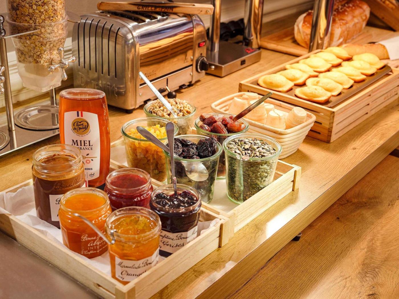 Chaque matin, vous savourerez un petit-déjeuner buffet composé de mets sucrés et salés, tels que des œufs, de la salade de fruits, des yaourts et des jus de fruits. Des viennoiseries cuites sur place et des madeleines fraîches sont aussi proposées, ainsi quune boisson chaude et un fruit à emporter. En dehors des horaires du buffet, un petit-déjeuner plus léger est disponible à partir de 4h00. Par ailleurs, vous pourrez prendre un verre et déguster une collation au bar sur place.