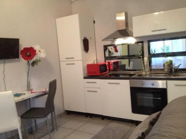 Appartement - Rez-de-Chaussée. Featuring a private entrance, this apartment comprises 1 living room, 1 separate bedroom and 1 bathroom with a walk-in shower and a hairdryer. In the well-equipped kitchenette, guests will find a stovetop, a dishwasher, an oven and a toaster. The apartment features tiled floors, a seating area with a flat-screen TV, a tea and coffee maker, a dining area as well as garden views. The unit offers 3 beds.