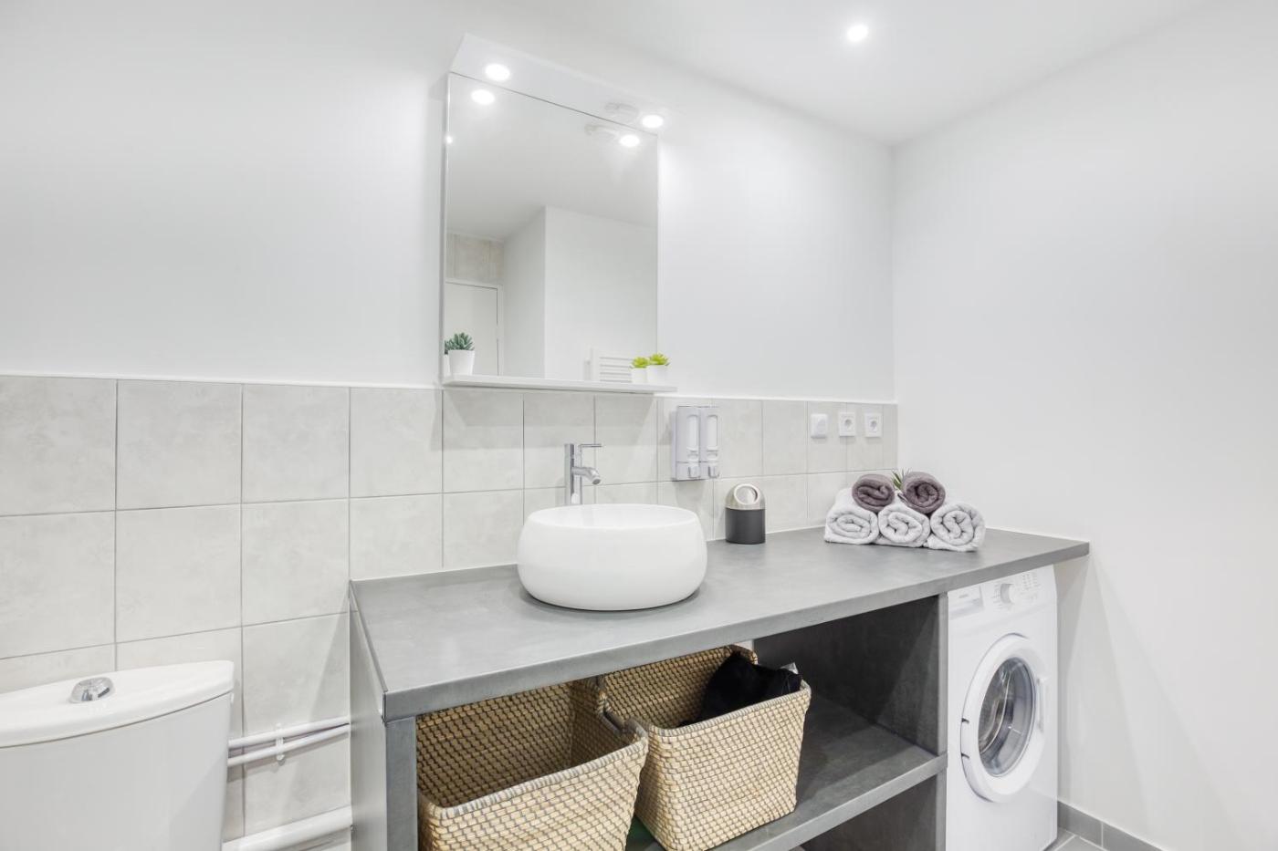 Appartement 1 Chambre. This apartment features 1 living room, 1 separate bedroom and 1 bathroom with a shower and a hairdryer. The apartments kitchen, which features a refrigerator and a microwave, is available for cooking and storing food. This apartment has a washing machine, a tea and coffee maker, flat-screen TV with streaming services, as well as chocolate for guests. The unit has 2 beds.