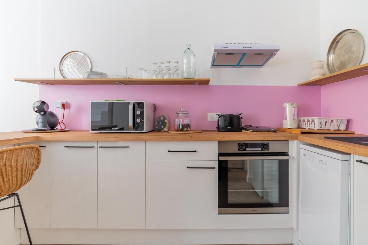 Appartement 1 Chambre. This air-conditioned apartment is comprised of 1 living room, 1 separate bedroom and 1 bathroom with a shower. The well-equipped kitchen features a stovetop, a refrigerator, a dishwasher and kitchenware. The apartment has tiled floors, a seating area with a flat-screen TV, a coffee machine, a dining area, as well as a wardrobe. The unit offers 3 beds.