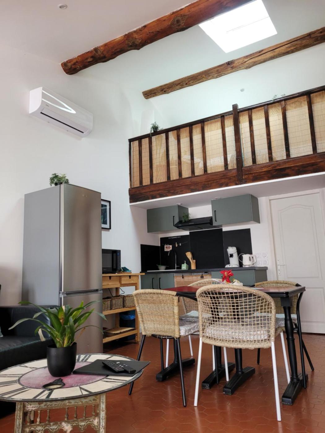 Appartement - Rez-de-Chaussée. Boasting a private entrance, this air-conditioned apartment comes with 1 living room, 1 separate bedroom and 1 bathroom with a shower and a hairdryer. The well-equipped kitchen features a stovetop, a refrigerator, kitchenware and an oven. This apartment has a washing machine, flat-screen TV with streaming services, city views, as well as winechampagne for guests. The unit has 1 bed.