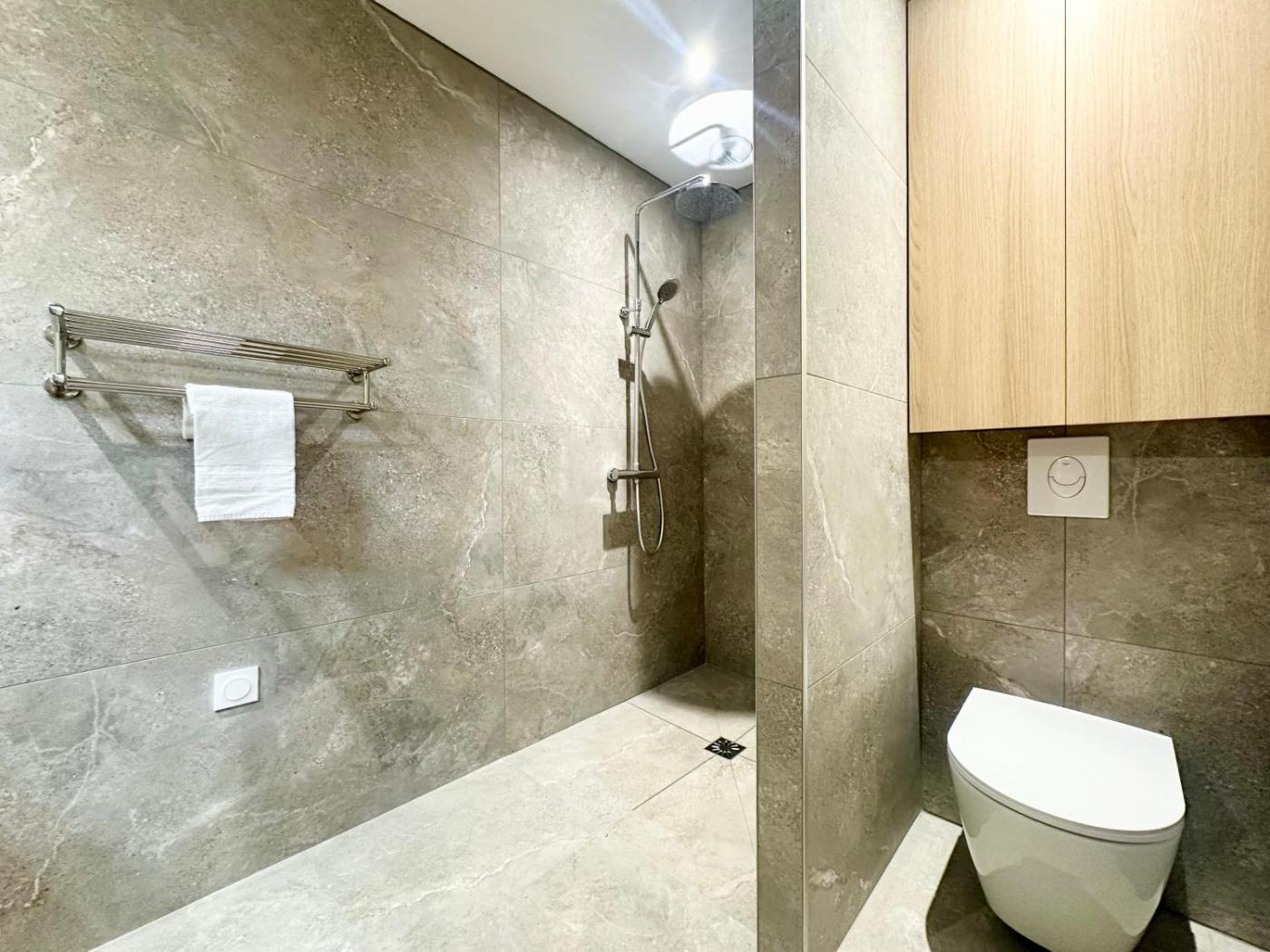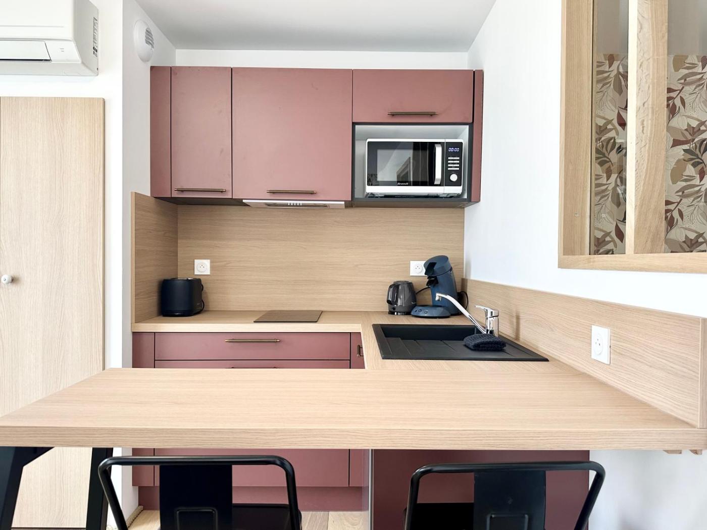 Appartement Supérieur 1 Chambre. Boasting a private entrance, this air-conditioned apartment features 1 living room, 1 separate bedroom and 1 bathroom with a walk-in shower and a hairdryer. In the well-fitted kitchen, guests will find a stovetop, a refrigerator, kitchenware and a microwave. The apartment has parquet floors, a seating area with a flat-screen TV, a washing machine, soundproof walls, as well as a tea and coffee maker. The unit has 2 beds.