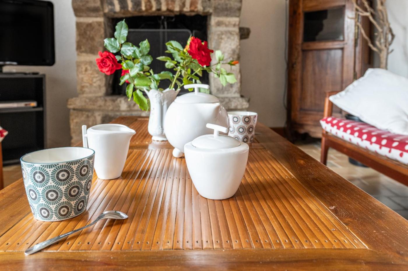 Maison 2 Chambres. This holiday home features a fireplace. This holiday home features 2 bedrooms, kitchen, a terrace and 1 bathroom with a shower. Guests will find a dishwasher, kitchenware, a microwave and a toaster in the fully equipped kitchen. The holiday home also comes with a barbecue. The holiday home features a washing machine, a private entrance, a coffee machine, a TV, as well as garden views. The unit has 3 beds.