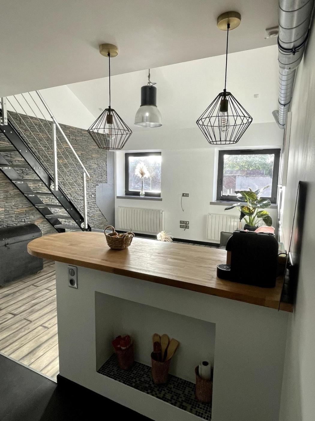 Appartement Loft 2 Chambres. Boasting a private entrance, this spacious apartment also includes 1 living room, 2 separate bedrooms and 1 bathroom with a bath. The apartments kitchen is available for cooking and storing food. The apartment has parquet floors, a seating area with a flat-screen TV, a washing machine, a sofa, as well as heating. The unit has 3 beds.