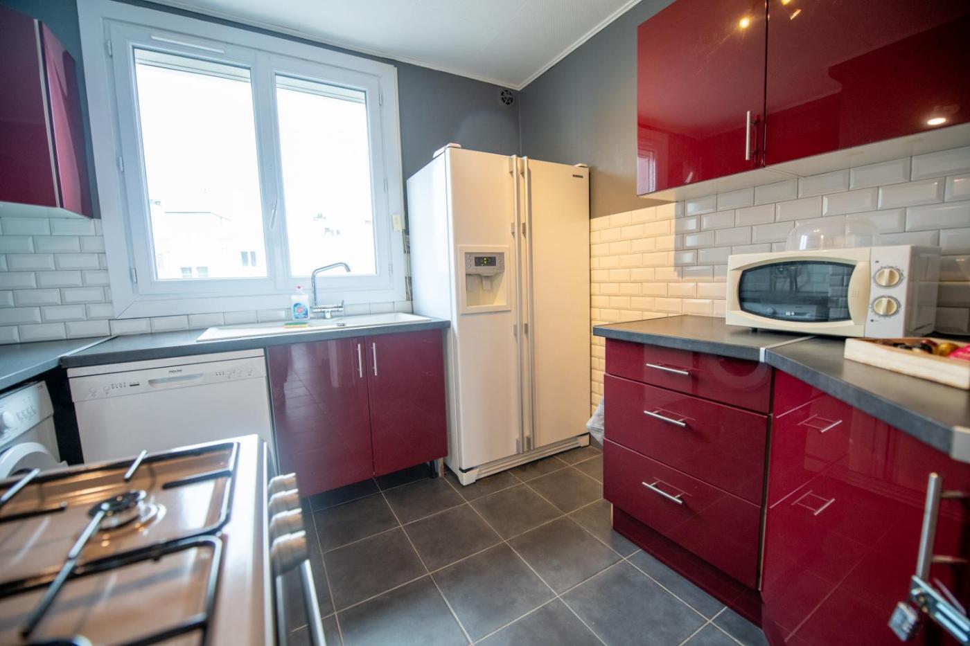 Appartement 3 Chambres. This spacious apartment features 3 bedrooms, a seating area with a sofa and 1 bathroom with a shower. The fully equipped kitchen has a stovetop, a refrigerator, a dishwasher and an oven. Boasting a balcony with city views, this apartment also features a washing machine and a flat-screen TV. The unit has 4 beds.