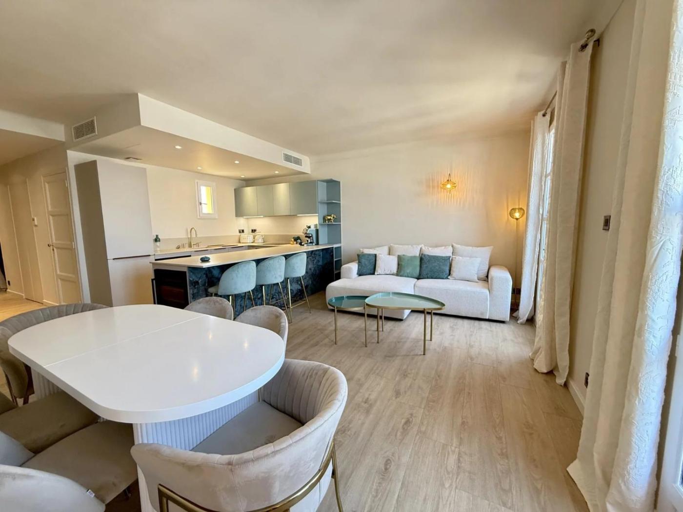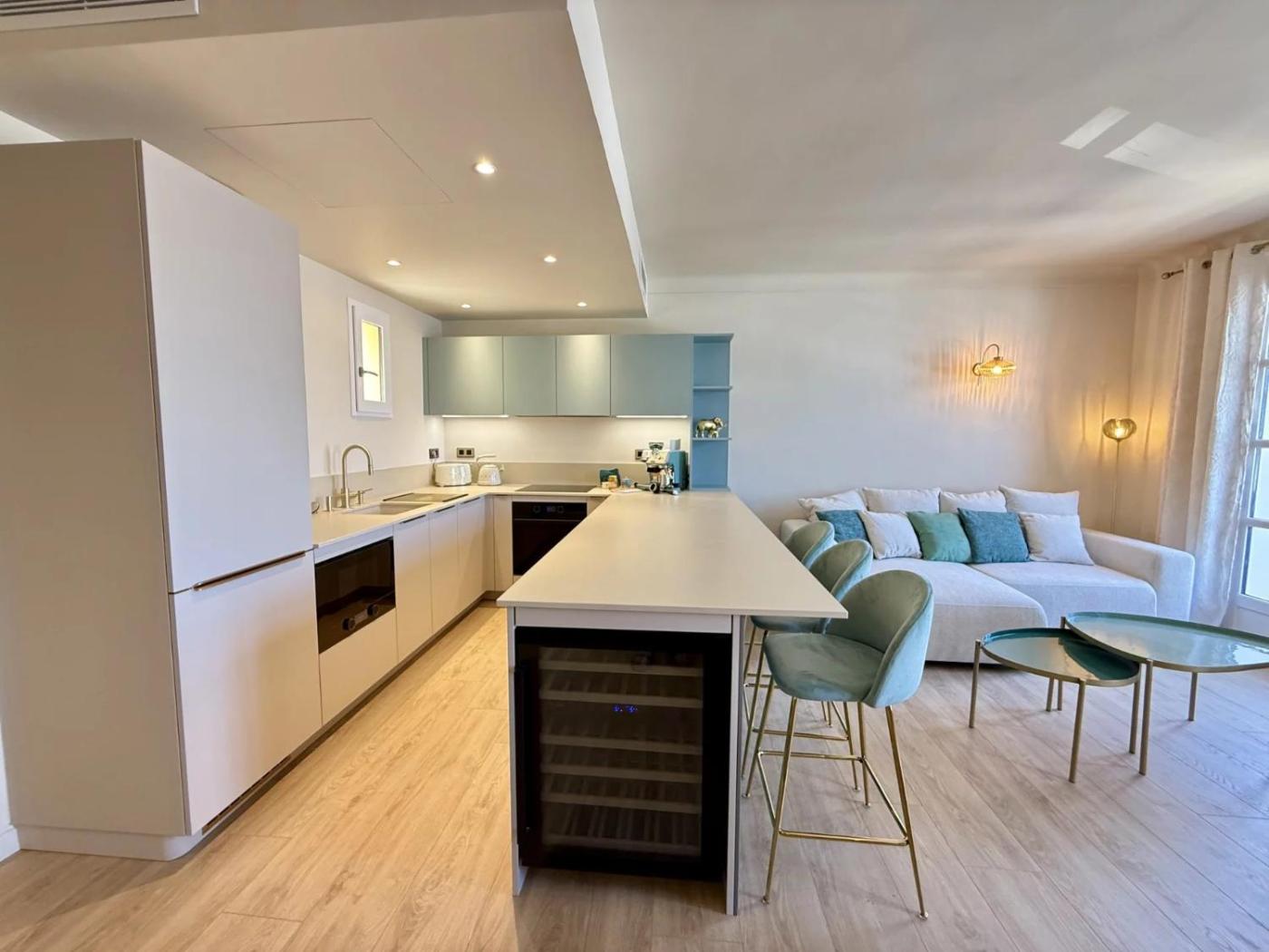 Appartement 2 Chambres. This spacious apartment comprises 1 living room, 1 separate bedroom and 1 bathroom with a walk-in shower and free toiletries. The well-equipped kitchen features a stovetop, a refrigerator, a dishwasher and kitchenware. The air-conditioned apartment provides a flat-screen TV with streaming services, a washing machine, a coffee machine, a dining area as well as sea views. The unit offers 2 beds.