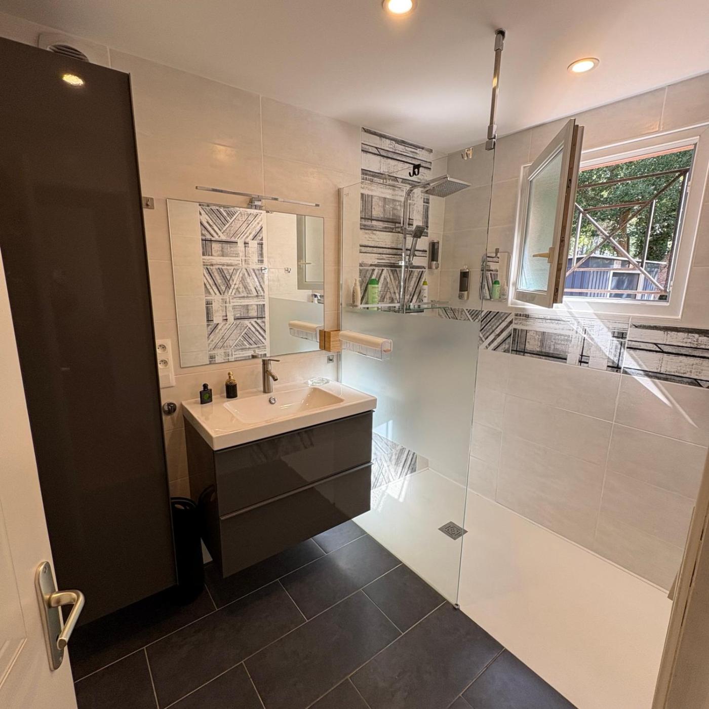 Villa 3 Chambres. This villas standout feature is the hot tub. Featuring a private entrance, this air-conditioned villa is comprised of a kitchen, 3 bedrooms and 2 bathrooms with a walk-in shower and a hairdryer. Guests will find a stovetop, a refrigerator, a dishwasher and kitchenware in the kitchen. The villa also has a barbecue. Boasting a terrace with garden views, this villa also offers a washing machine and a flat-screen TV with streaming services. The unit offers 3 beds.