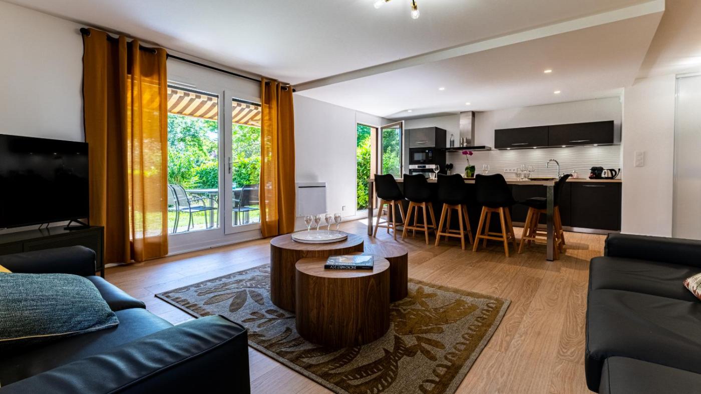 Appartement 3 Chambres. Guests will find a stovetop, a refrigerator, a dishwasher and an oven in the well-fitted kitchen. The apartment also features a barbecue. The spacious apartment offers a flat-screen TV with streaming services, a washing machine, a tea and coffee maker, a dining area as well as garden views. The unit has 4 beds.