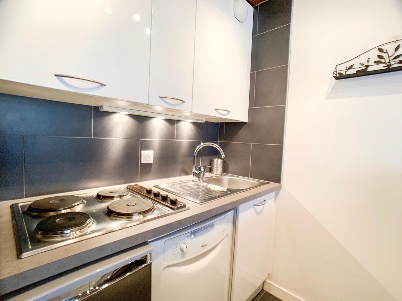 Cet appartement se compose de 1 chambre séparée, dune cuisine entièrement équipée avec un réfrigérateur et un lave-vaisselle, ainsi que de 1 salle de bains. Une télévision est à disposition.