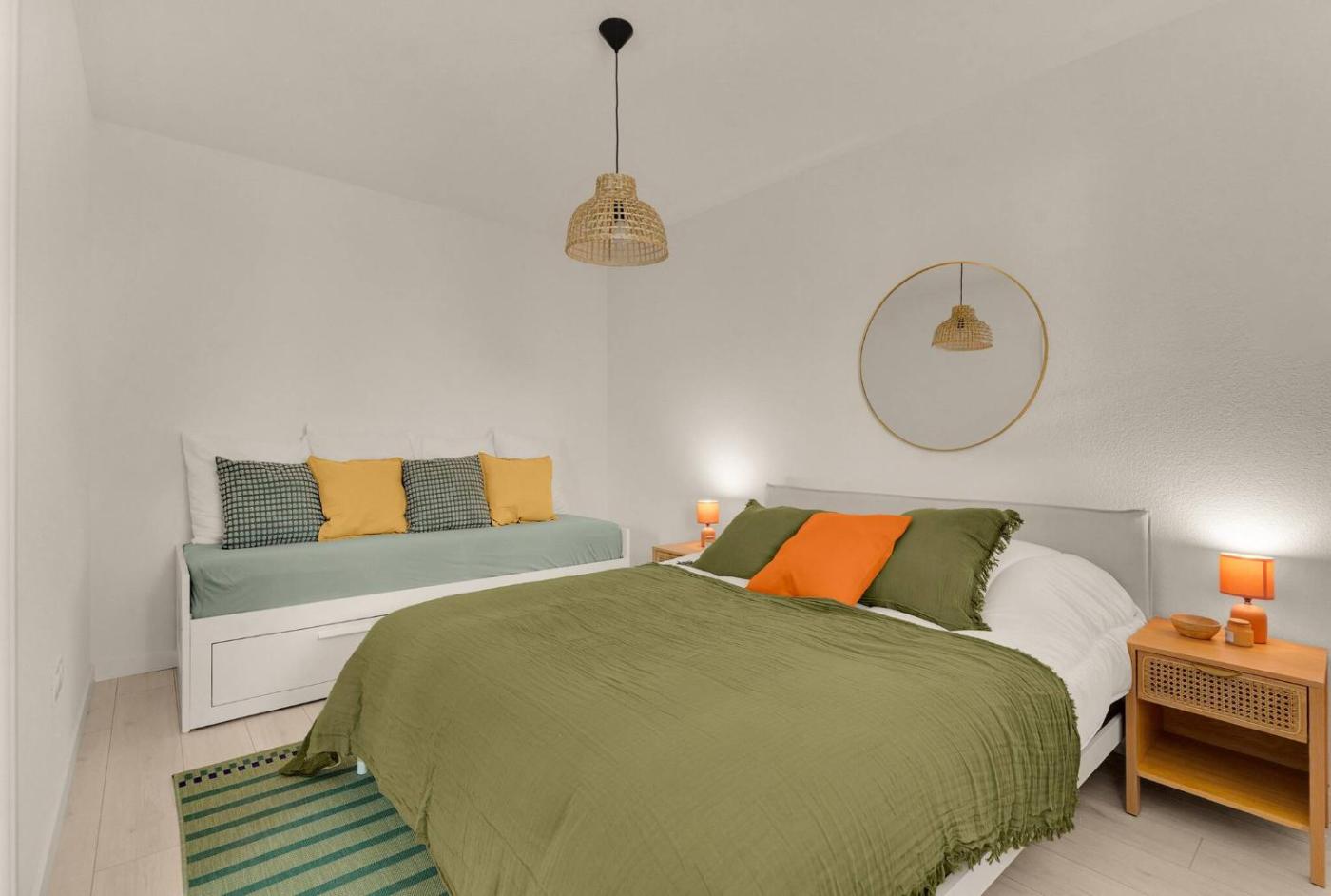 Cet appartement comporte 2 chambres, une cuisine entièrement équipée avec un réfrigérateur et un lave-vaisselle, ainsi que 1 salle de bains avec une baignoire. Des serviettes et du linge de lit sont à disposition.