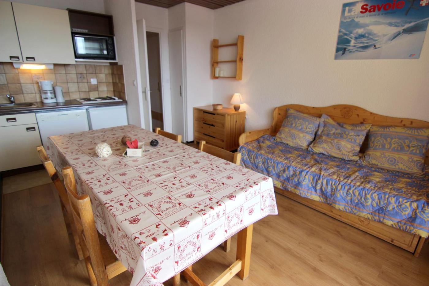 Appartement 1 Chambre (4 personnes). Orienté au sud-ouest et situé au 3e étage, ce studio-cabine s’ouvre sur un balcon. Il comporte une kitchenette équipée d’un four, d’un micro-ondes, de plaques de cuisson vitrocéramiques, d’un réfrigérateur et d’un lave-vaisselle. Vous bénéficierez également d’un coin repas, de toilettes séparées et d’une salle de bains pourvue d’une baignoire. Cet hébergement comprend 2 lits superposés et un salon doté d’un canapé-lit. Le linge de lit n’est pas fourni. Veuillez noter que les animaux domestiques ne sont pas admis dans cet établissement. ;