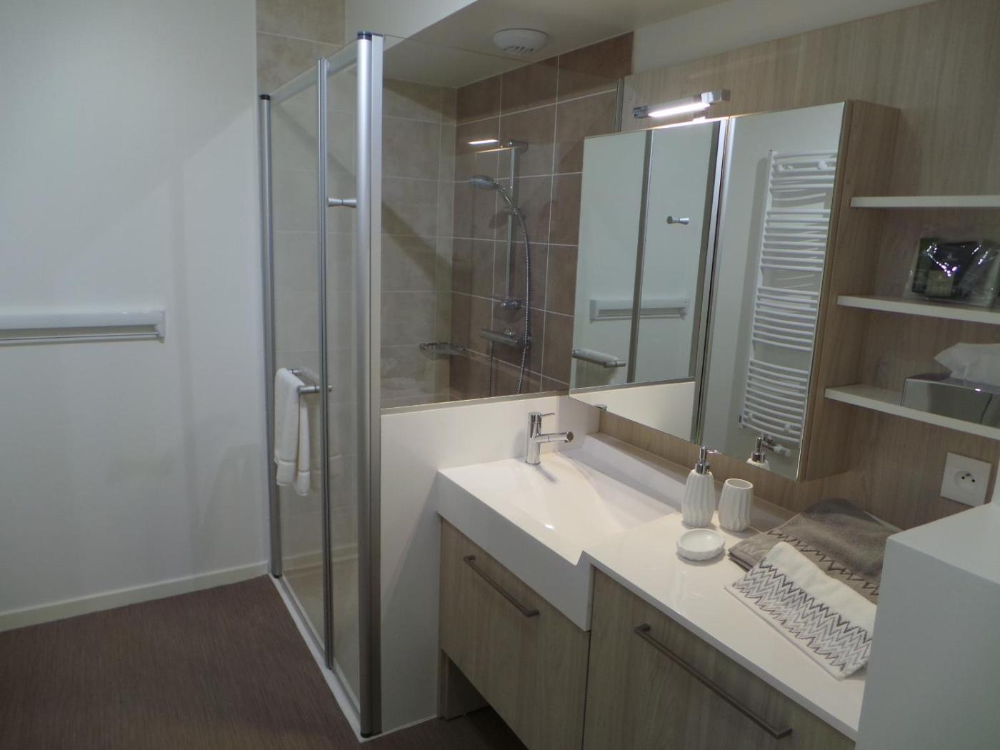 Appartement Standard. This apartment includes 1 living room, 1 separate bedroom and 1 bathroom with a walk-in shower and free toiletries. The well-equipped kitchenette features a stovetop, a refrigerator, kitchenware and a microwave. This wheelchair accessible apartment has soundproof walls, a seating area with a flat-screen TV and a toilet with grab rails. The unit has 1 bed. ;