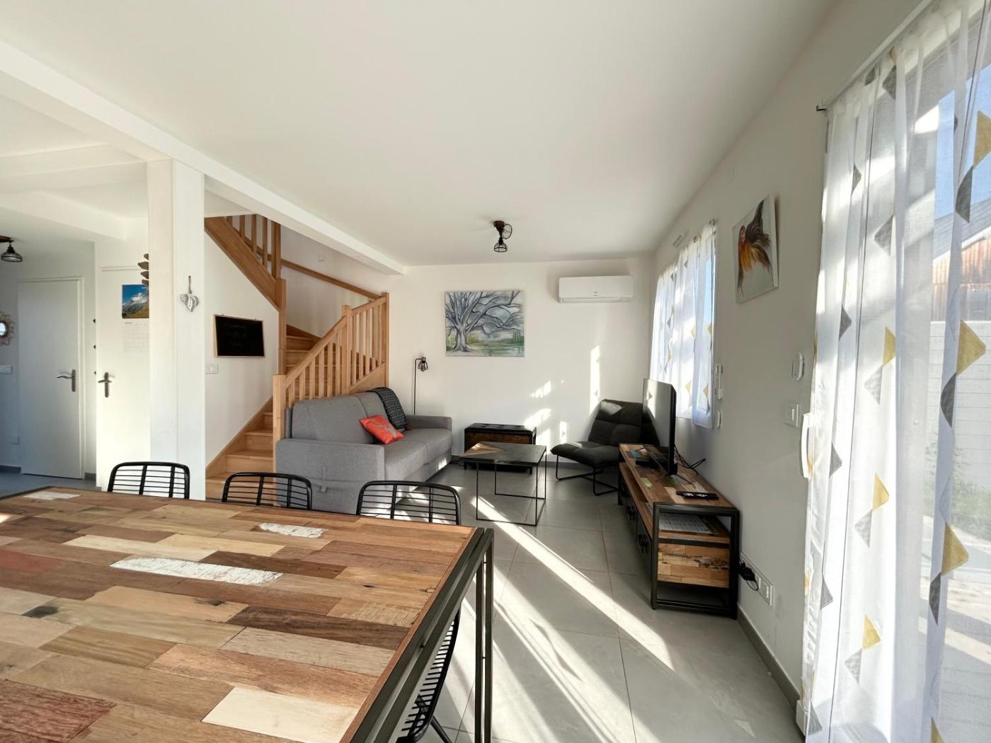 Maison 3 Chambres. Featuring a private entrance, this air-conditioned holiday home is comprised of 1 living room, 3 separate bedrooms and 2 bathrooms with a walk-in shower and a hairdryer. The well-equipped kitchen features a stovetop, a refrigerator, a dishwasher and kitchenware. Boasting a terrace with garden views, this holiday home also offers a washing machine and a flat-screen TV with cable channels. The unit offers 6 beds.